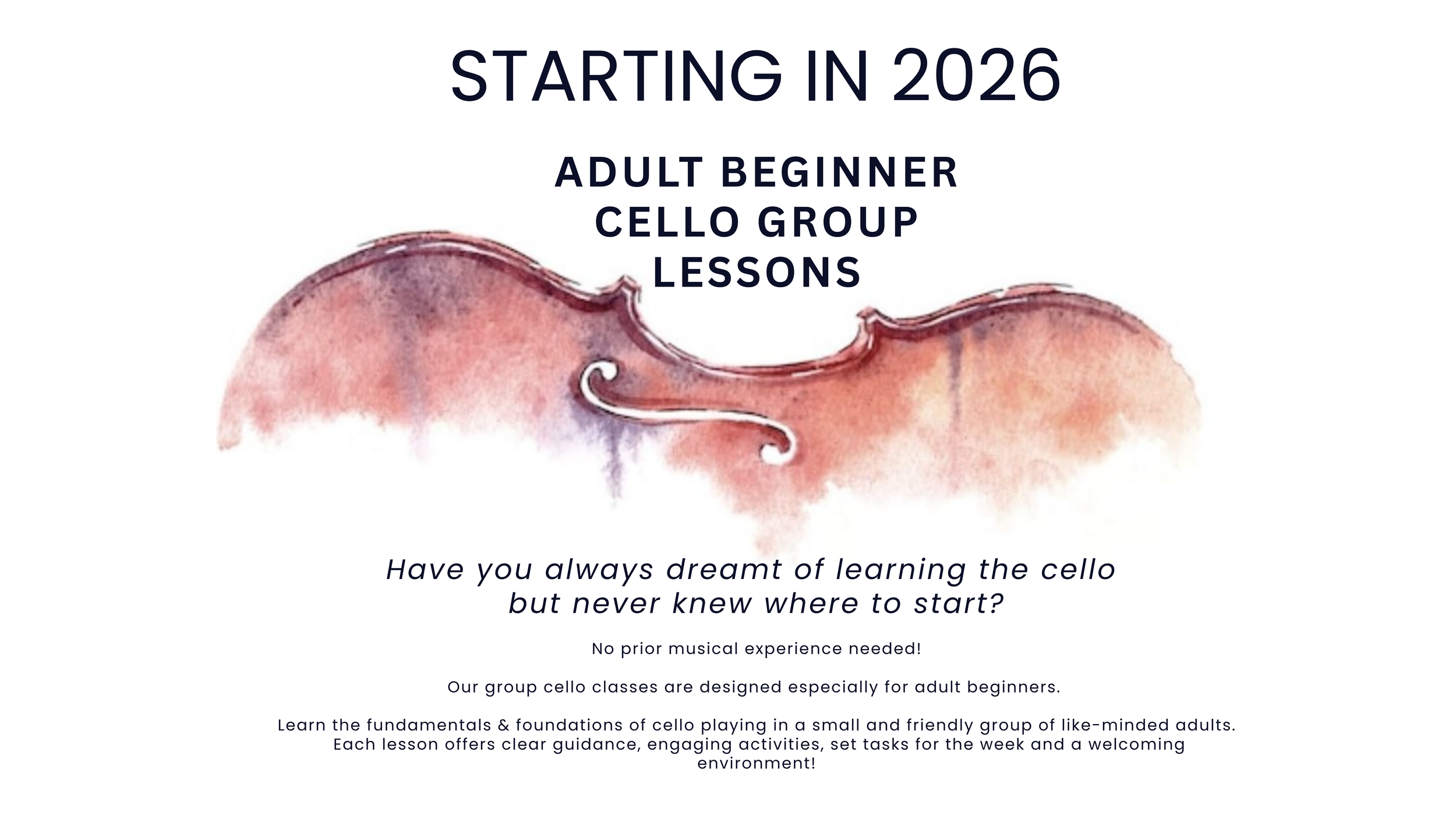 Adult cello classes starting in Term 1, 2026.